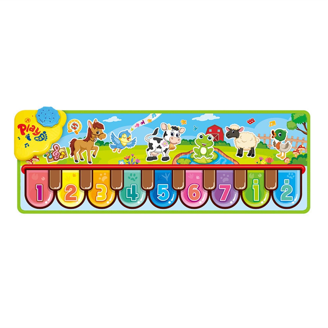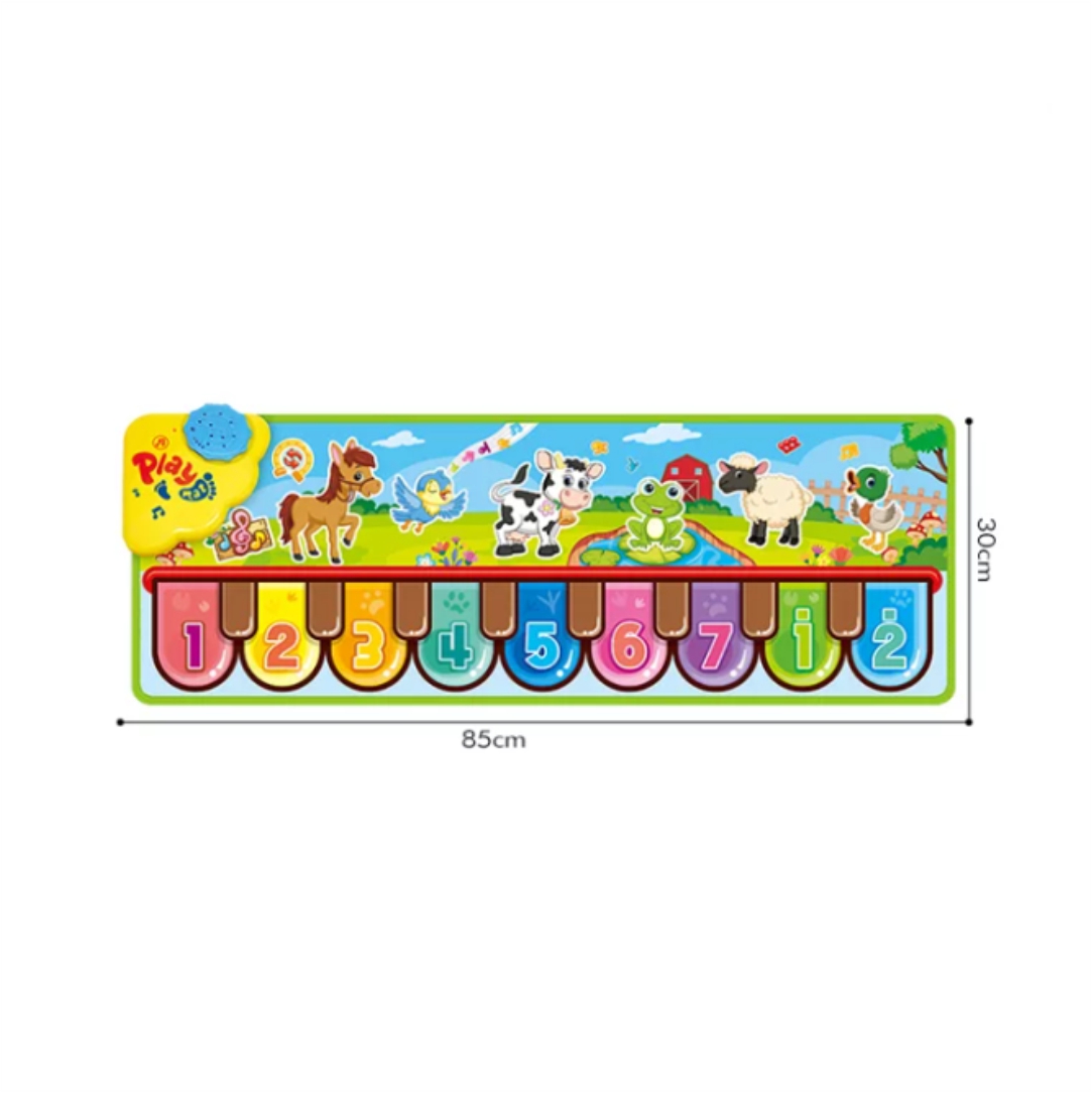 Μουσικό χαλί πιάνο με ήχους ζώων. Ολόκληρη η οικογένεια μπορεί να παίξει και να διασκεδάσει. Ακούγονται τραγούδια σε δευτερόλεπτα χρησιμοποιώντας τα τεράστια πλήκτρα χρωμάτων και αριθμών. Παίξτε μαζί με τους ήχους ζώων. Πρόκειται για παιχνίδι που διαθέτει όλα τα πρότυπα ασφαλείας, κατάλληλο για παιδιά άνω των 3 ετών. Διαστάσεις 85x30cm.