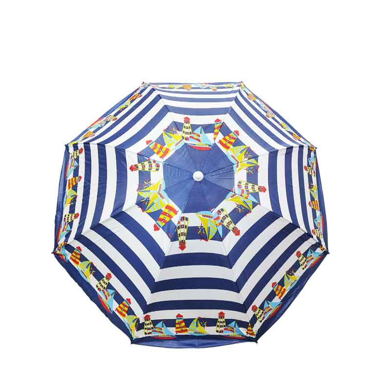 Ομπρέλα θαλάσσης διαμέτρου 150 εκ., ιδανική για προστασία από τον ήλιο στην παραλία, τον κήπο ή το κάμπινγκ. Προσφέρει ικανοποιητική σκίαση, δημιουργώντας έναν άνετο χώρο χαλάρωσης κατά τις ζεστές καλοκαιρινές ημέρες.