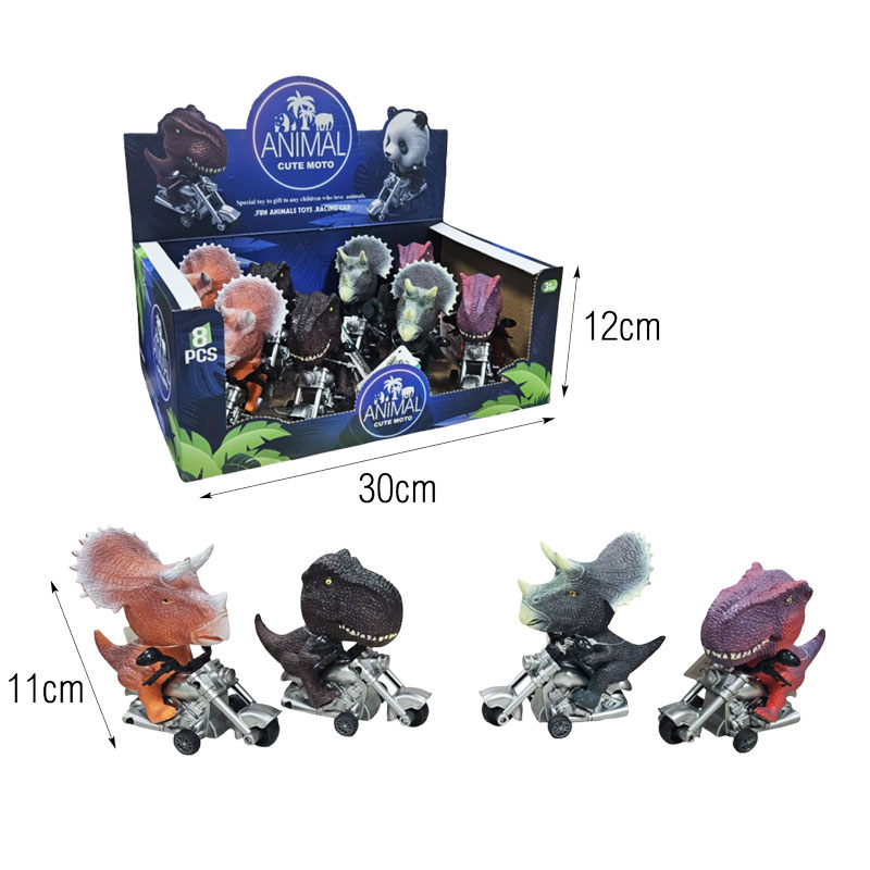 Σετ παιχνιδιών με χαριτωμένους δεινόσαυρους που οδηγούν μηχανή, ιδανικό για παιδιά που λατρεύουν τα οχήματα και τους δεινόσαυρους. Το σετ περιλαμβάνει διάφορα σχέδια και χρώματα, προσφέροντας ποικιλία και ατελείωτο παιχνίδι.