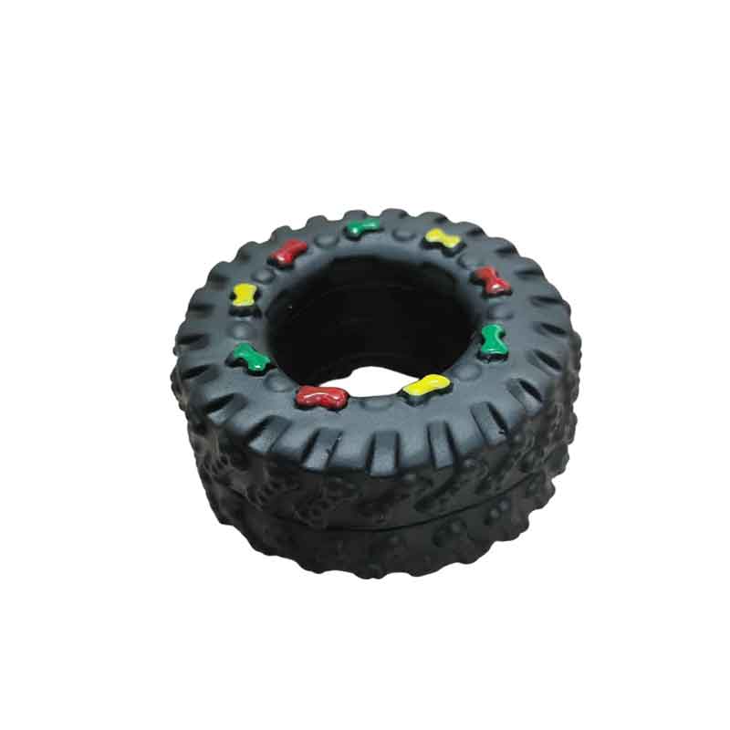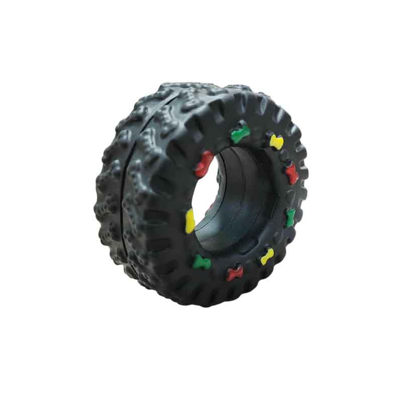 Ανθεκτικό παιχνίδι για σκύλους σε σχήμα λάστιχου, ιδανικό για δάγκωμα και παιχνίδι. Παράγει ήχο “squeak” όταν το πατάτε, προσφέροντας διασκέδαση και εκτόνωση στο κατοικίδιο. Διάμετρος περίπου 8cm. Κατάλληλο για μικρούς και μεσαίους σκύλους.