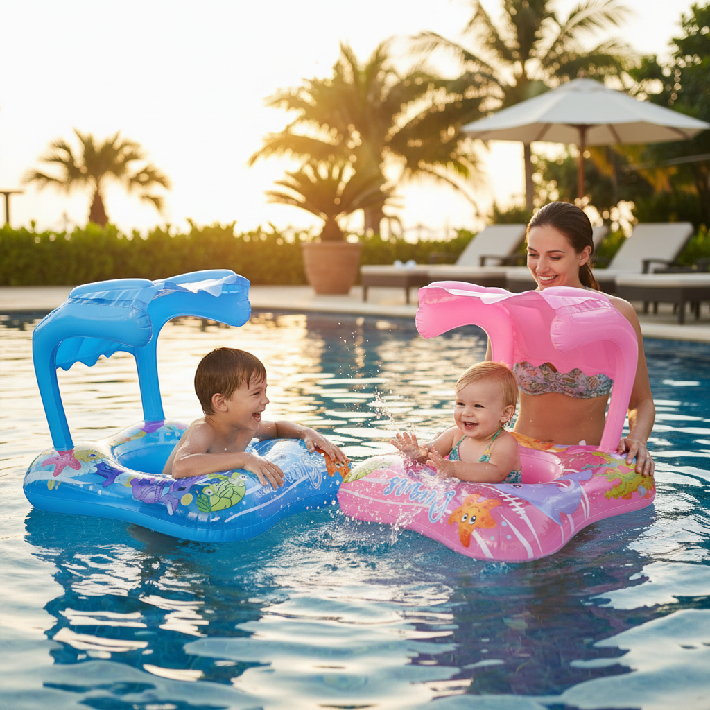 Διασκεδάστε με το μωρό σας στη θάλασσα και κάντε τα πρώτα του βήματα στο νερό να μοιάζουν παιχνίδι! Διαθέτει ασφαλές και σταθερό κάθισμα από μαλακό υλικό PVC που δεν τραυματίζει το δέρμα και προστατευτική φουσκωτή τέντα. Με χειρολαβές κρατήματος. Άνετο και εύκολο στη χρήση. Υλικό: Ανθεκτικό, μη τοξικό PVC Ηλικίες: 3+ Αντοχή: έως 20KG