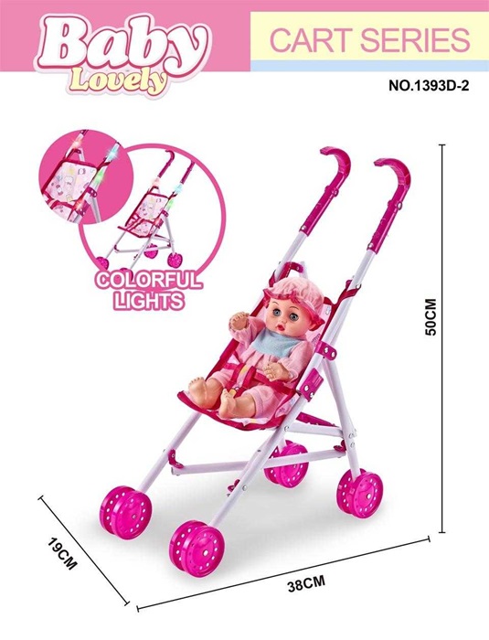 Παιδικό καροτσάκι μωρού με φωτισμό LED και κούκλα – 1393D-2 – 307137