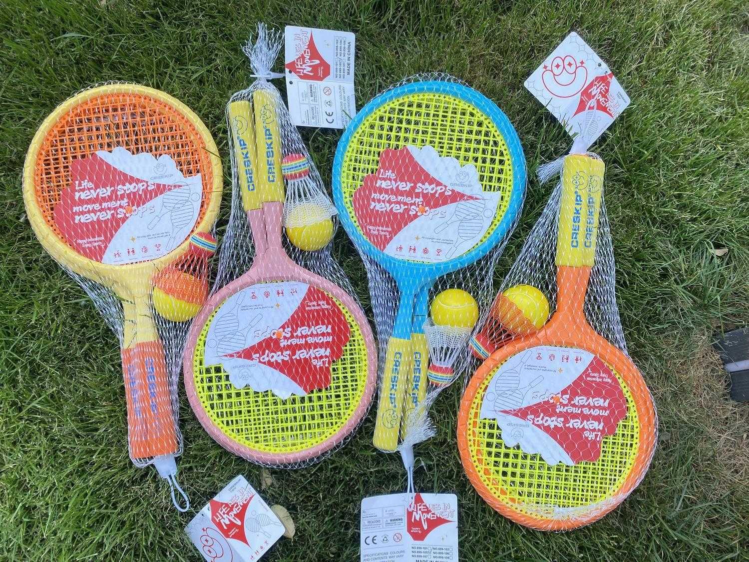 με 2 πολύχρωμες ρακέτες, μπαλάκι και φτερό, ιδανικό για τους μικρούς λάτρεις του αθλήματος!
