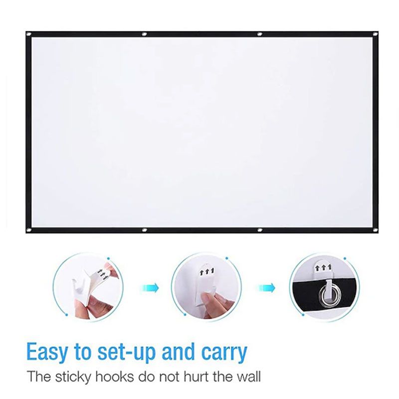 Χειροκίνητη oθόνη πανί προβολής εικόνας 100 ιντσών. Μπορεί να στερεωθεί εύκολα σε τοίχο και είναι κατάλληλη για παρουσιάσεις σε χώρους εκπαίδευσης ή αίθουσες συσκέψεων.