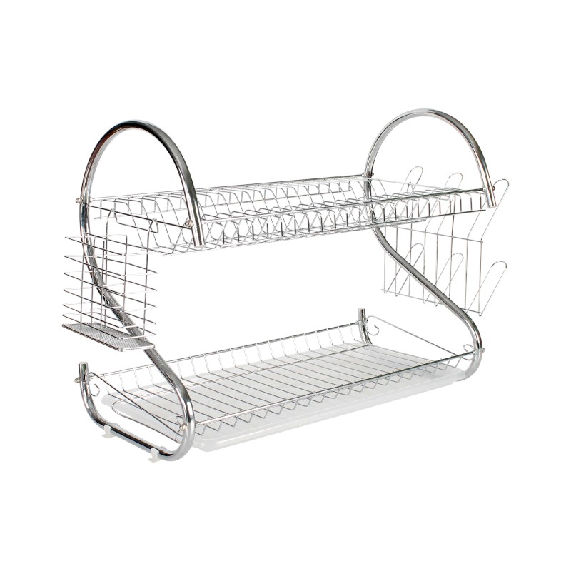 Πιατοθήκη αποστράγγισης διώροφη inox, σε πρακτικό σχεδιασμό, με θήκη μαχαιροπίρουνων και βάσεις ποτηριών.