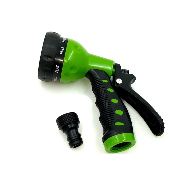 Πιστόλι ποτίσματος για λάστιχο με σκανδάλη και 7 διαφορετικές ρυθμίσεις πίεσης. Εργονομική λαβή και κατασκευή ανθεκτική στην υψηλή πίεση.