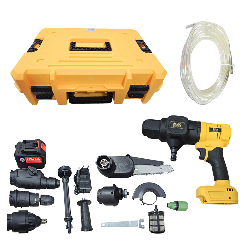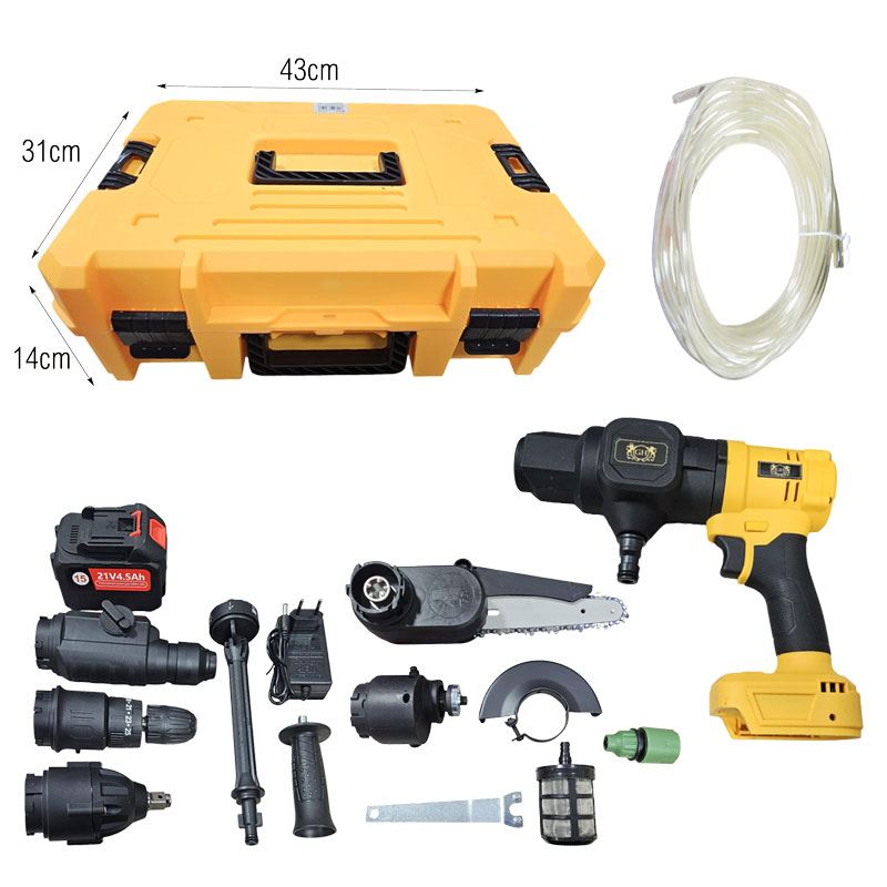 Πολυλειτουργικό σετ επαναφορτιζόμενου εργαλείου, ιδανικό για εργασίες στο σπίτι, στον κήπο και στο συνεργείο. Το σετ περιλαμβάνει βασική μονάδα με μπαταρία και πληθώρα εξαρτημάτων που επιτρέπουν διαφορετικές χρήσεις, όπως κοπή, σύσφιξη, διάτρηση και γενική συντήρηση.