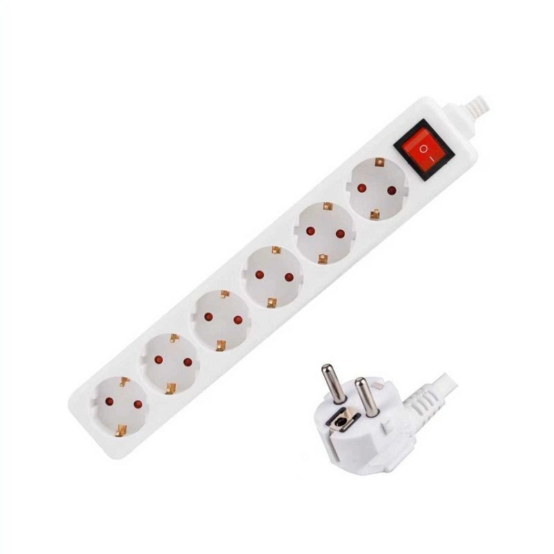 Πολύπριζο σούκο 6 θέσεων με διακόπτη και καλώδιο μήκους 1.5m, λευκό.