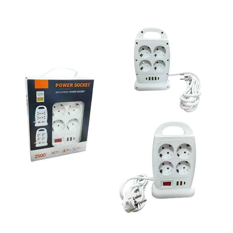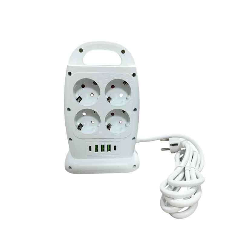 Πολύπριζο ασφαλείας με πρωτοποριακό σχεδιασμό μπρος-πίσω, προσφέροντας 8 θύρες σούκο και θύρες USB για φόρτιση συσκευών.