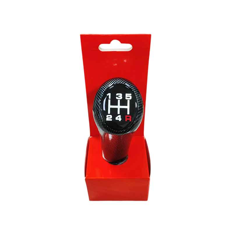Πόμολο λεβιέ ταχυτήτων 5 σχέσεων με μοντέρνο carbon look, ιδανικό για αναβάθμιση της εμφάνισης του εσωτερικού του αυτοκινήτου. Διαθέτει ευδιάκριτη ένδειξη ταχυτήτων (1–5 & R) και εργονομικό σχεδιασμό για άνετο και σταθερό κράτημα κατά την οδήγηση. Κατάλληλο για χειροκίνητα κιβώτια, με εύκολη τοποθέτηση και ανθεκτική κατασκευή για καθημερινή χρήση.