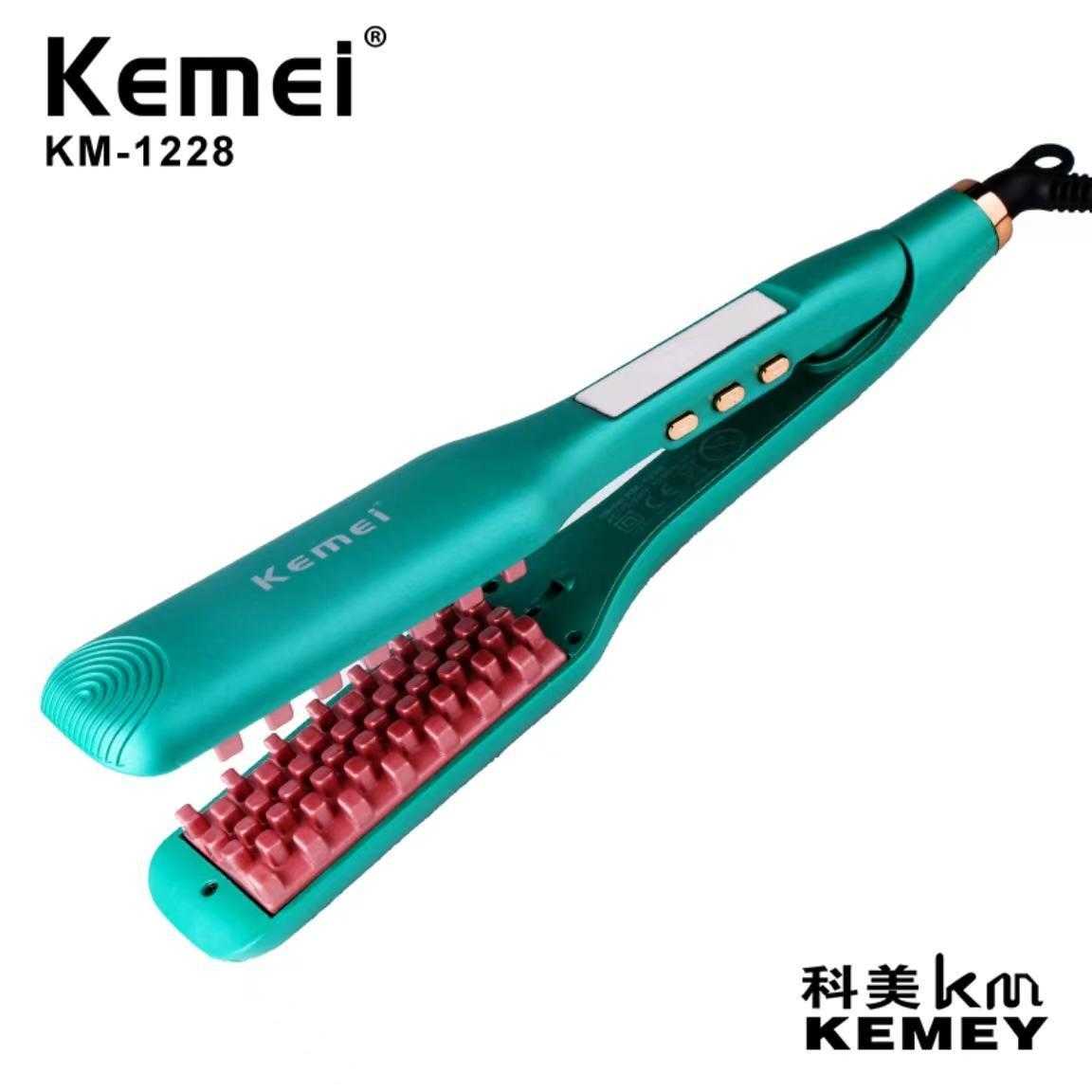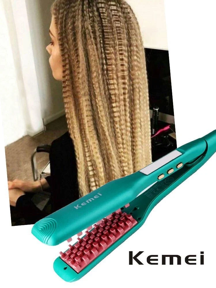 Ισιωτική πρέσα μαλλιών – Multistyler της Kemei για ίσιωμα αλλά και σγουρό Look χάρη στις πρωτοποριακές πλάκες που διαθέτει για εφέ ”τοστ”. Ισιώνει με μία κίνηση καθώς οι ειδικές εγκοπές ”αγκαλιάζουν” και χτενίζουν τα μαλλιά σας ενώ η θερμότητα διαχέεται ομοιόμορφα. Οι κεραμικές μεγάλες πλάκες της, πλάτους 5cm, διαθέτουν ειδική επίστρωση τουρμαλίνης που προστατεύει τα μαλλιά απ τη θερμότητα και προσφέρει ένα λείο και λαμπερό αποτέλεσμα.