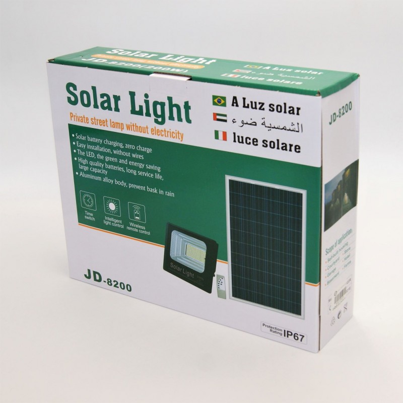 ΠΡΟΒΟΛΕΑΣ ΣΕΤ ΜΕ ΠΑΝΕΛ SOLAR 200W 6500K IP67 JD-8200