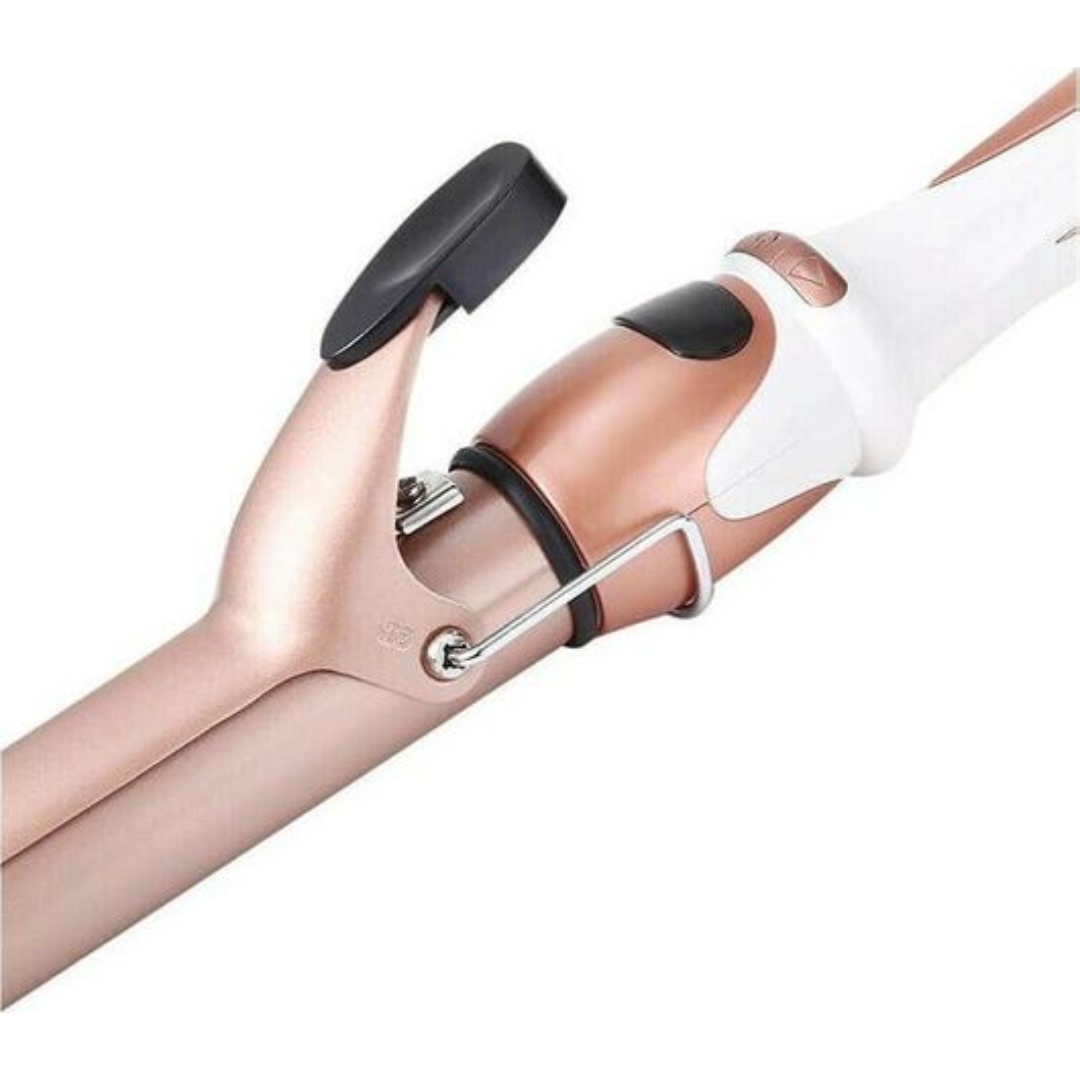 Ψαλίδι μαλλιών για μπούκλες. Για όλους τους τύπους μαλλιών. Ισχύς 60W. Γρήγορη θέρμανση. Διαθέτει κεραμική επίστρωση. Έχει καλώδιο που περιστρέφεται κυκλικά για πιο εύκολη χρήση της συσκευής όταν δημιουργείτε το styling που επιθυμείτε. Διαστάσεις 39×2.5cm. Διαθέτει LCD οθόνη.
