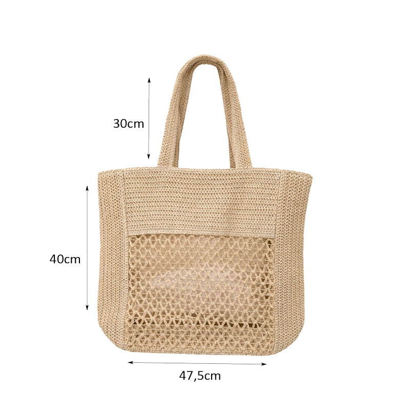 Με διαστάσεις 47,5x40cm, προσφέρει άνετο αποθηκευτικό χώρο για όλα τα απαραίτητα της παραλίας, όπως πετσέτες, αντηλιακά και προσωπικά αντικείμενα. Τα πλεκτά χερούλια μήκους 30cm εξασφαλίζουν άνετη μεταφορά στον ώμο.