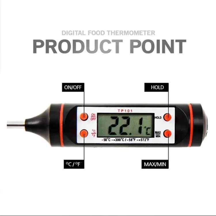 Ψηφιακό θερμόμετρο για μέτρηση θερμοκρασίας προϊόντων, με μακριά βελόνα, κατασκευασμένη από ανοξείδωτο χάλυβα.