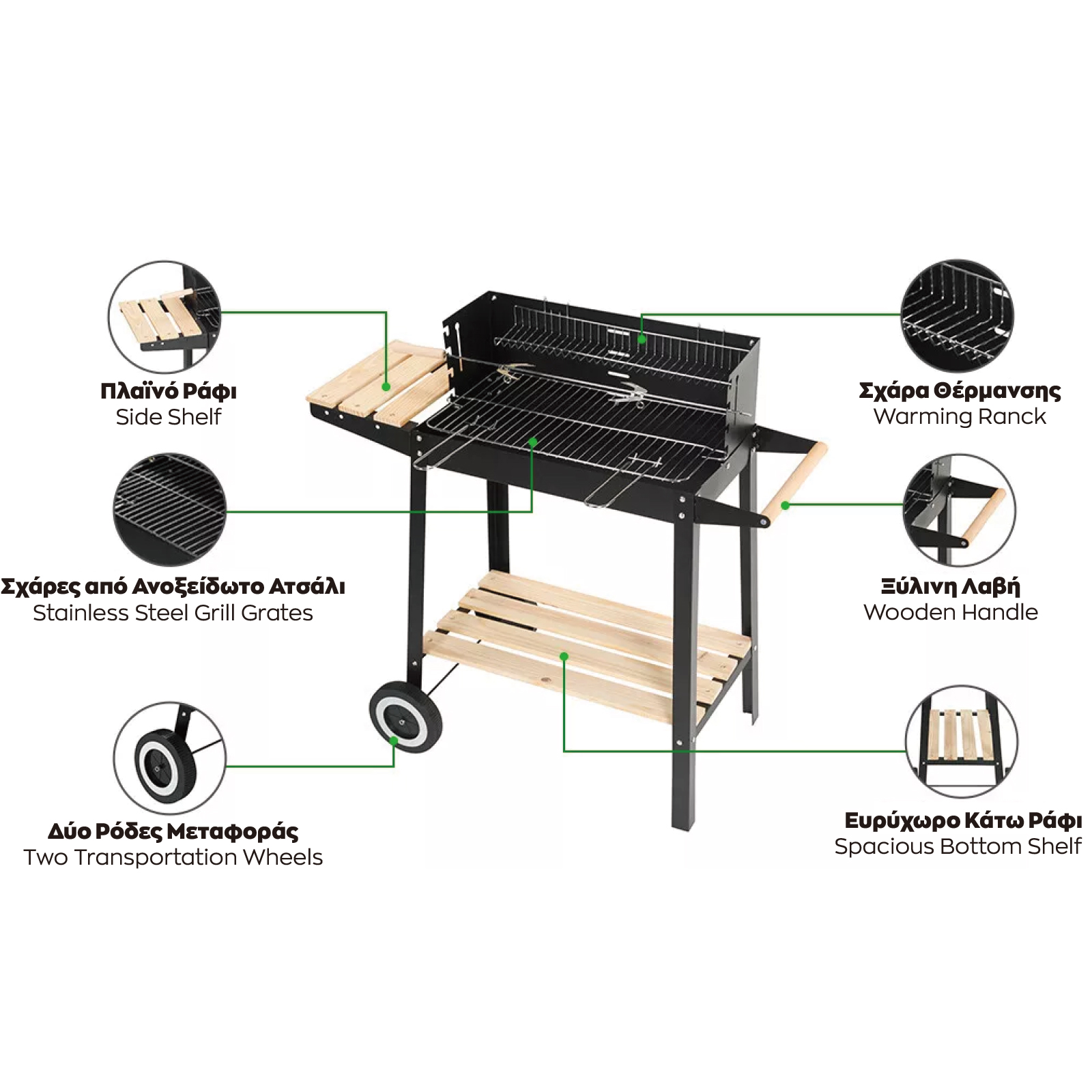 ΨΗΣΤΑΡΙΑ BBQ 85x83cm ΜΕ ΞΥΛΙΝΕΣ ΛΑΒΕΣ ΚΑΙ ΡΟΔΕΣ 1930Α9