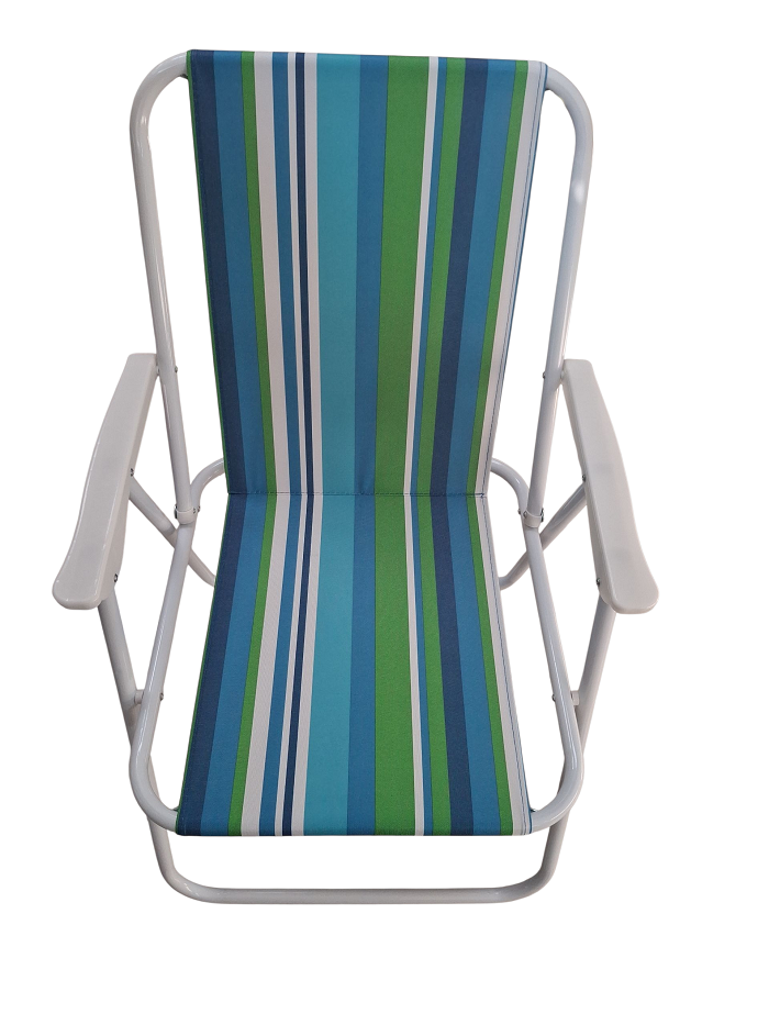 Πτυσσόμενη καρέκλα camping, με μπράτσα, και αδιάβροχο ύφασμα που καθαρίζεται εύκολα. Στιβαρός σιδερένιος σκελετός που διπλώνει με μία κίνηση, για εύκολη μεταφορά και αποθήκευση. Διαθέτει αντιολισθητικά πατάκια. Ιδανική για την παραλία, το camping, το ψάρεμα, τον κήπο κα.