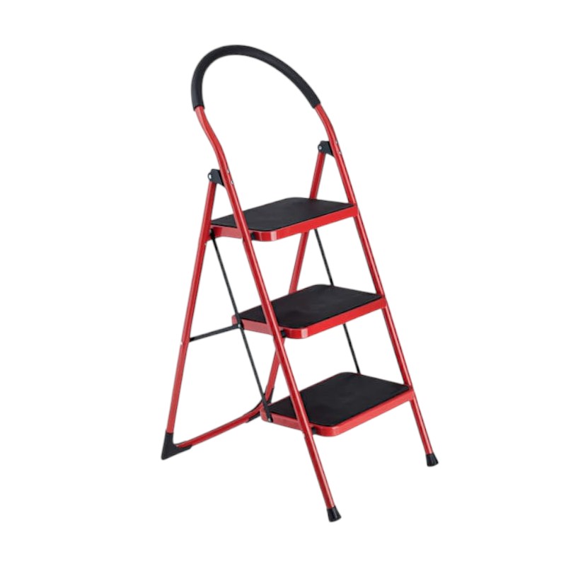 Πτυσσόμενη σκάλα 3 σκαλιών, με στιβαρή σιδερένια κατασκευή, και εύκολη αποθήκευση.