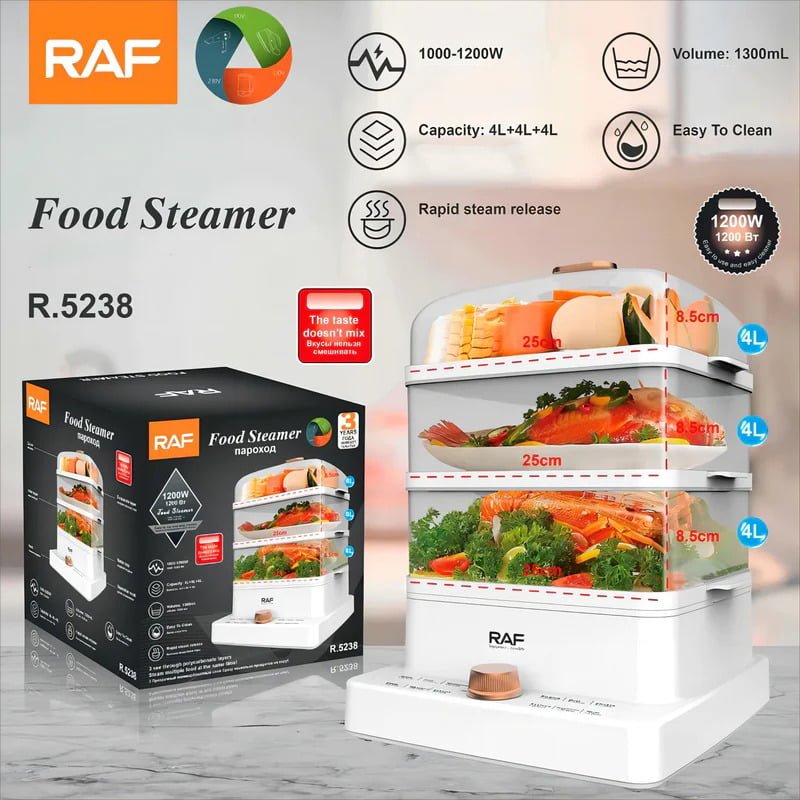 Raf Ατμομάγειρας με 3 Επίπεδα Μαγειρέματος 12lt R.5238 – Food Steamer