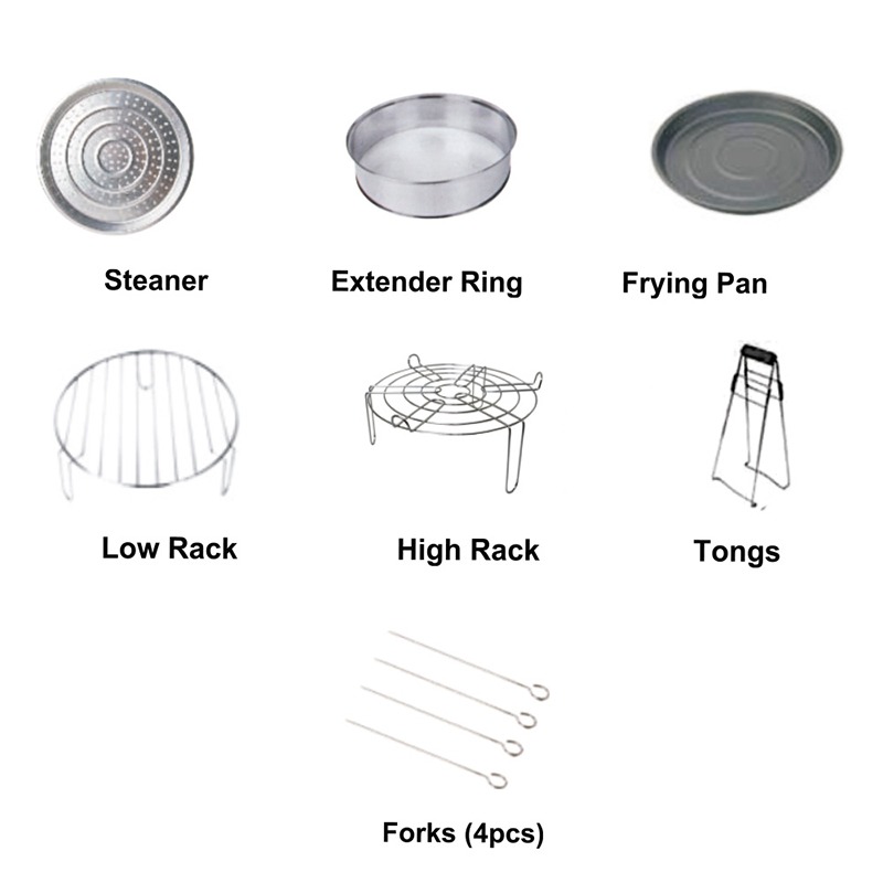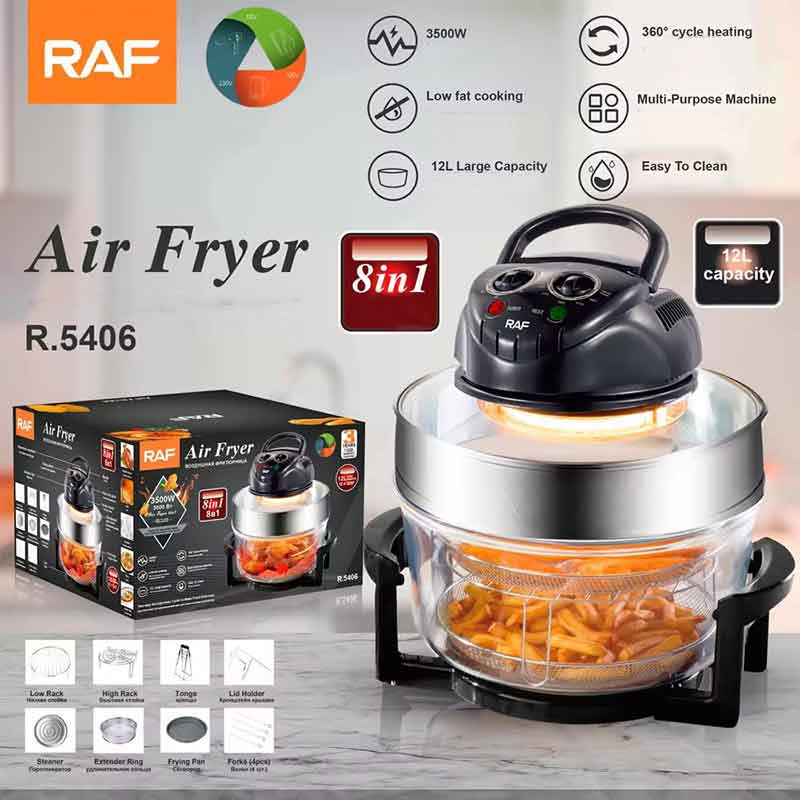 Η πολυλειτουργική φριτέζα αέρα που ανήκει στη μάρκα Raf θα γίνει ο μεγαλύτερος βοηθός σας στην κουζίνα. Αυτή η φριτέζα αέρα χρησιμοποιεί τεχνολογία γρήγορου αέρα για να μαγειρεύει τα αγαπημένα σας φαγητά, χρησιμοποιεί λιγότερο λάδι, μειώνει την κατανάλωση λαδιού έως και 80% και το αντικολλητικό καλάθι καθαρίζεται πολύ εύκολα. Τα αξεσουάρ πλένονται στο πλυντήριο πιάτων. Είναι δυνατή η παρασκευή τηγανιτές πατάτες, μπριζόλα, ψάρι, γαρίδες, πίτσα, μπουτάκια κοτόπουλου, κέικ κ.λπ.