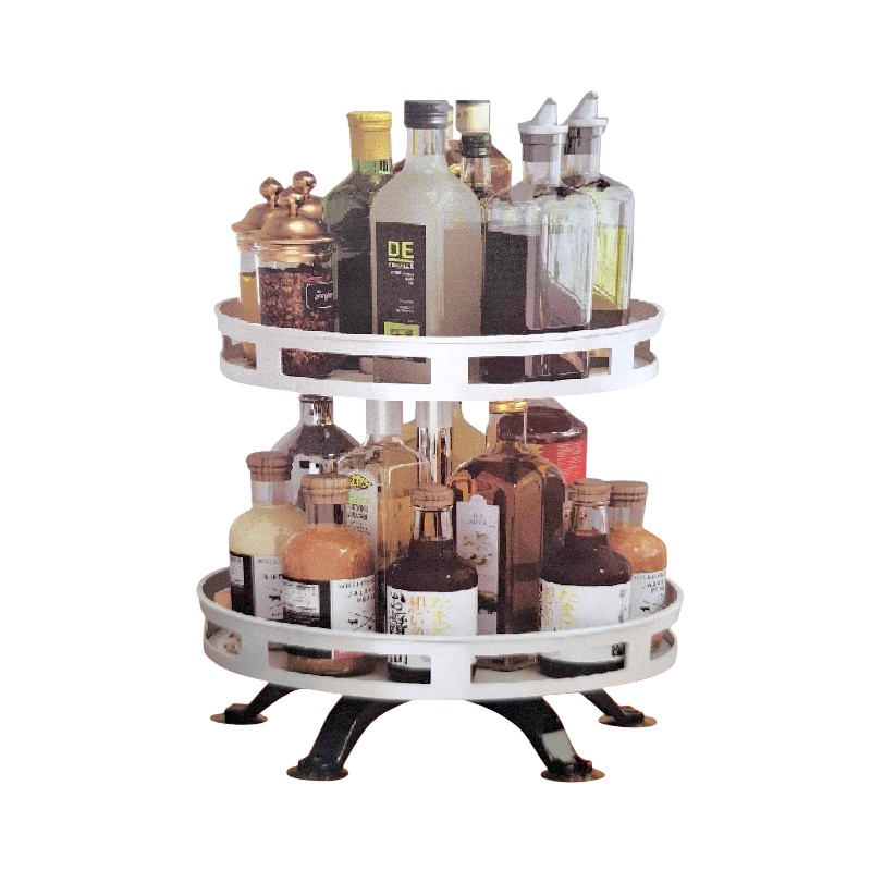 Ραφιέρα οργάνωσης πάγκου κουζίνας με μεταλλικό σκελετό, με πλαστικά ράφια περιστρεφόμενα 360 μοίρες,