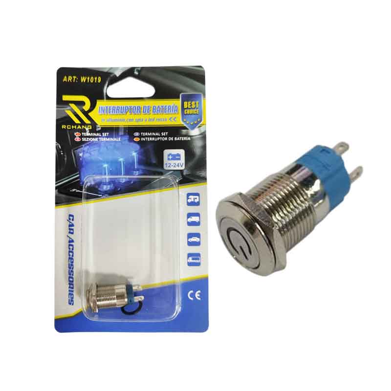 Πρακτικός και ανθεκτικός διακόπτης μπαταρίας αυτοκινήτου 12–24V με φωτιζόμενο κουμπί και μεταλλικό σώμα, ιδανικός για εγκατάσταση σε αυτοκίνητα, φορτηγά, μοτοσυκλέτες και άλλες εφαρμογές. Το προϊόν περιλαμβάνει κιτ τερματικών σύνδεσης για εύκολη τοποθέτηση. Προσφέρει ασφαλή αποσύνδεση της μπαταρίας και βοηθά στην αποφυγή εκφόρτισης όταν το όχημα δεν χρησιμοποιείται. Συμβατό με τάσεις 12V και 24V.