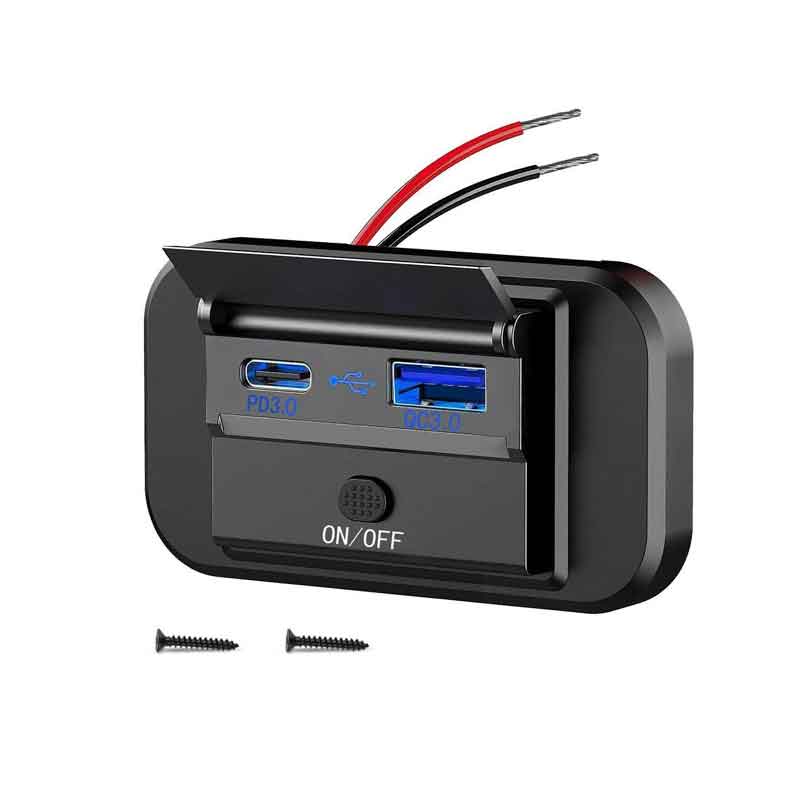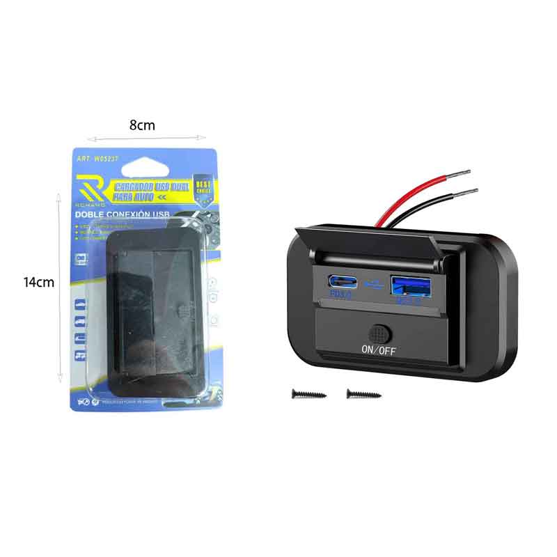 Διπλός φορτιστής USB για αυτοκίνητο με ενσωματωμένο διακόπτη On Off, ιδανικός για ταυτόχρονη φόρτιση δύο συσκευών. Διαθέτει μία θύρα USB και μία θύρα Type C, προσφέροντας γρήγορη και σταθερή φόρτιση για κινητά τηλέφωνα, tablet, GPS και άλλες ηλεκτρονικές συσκευές.