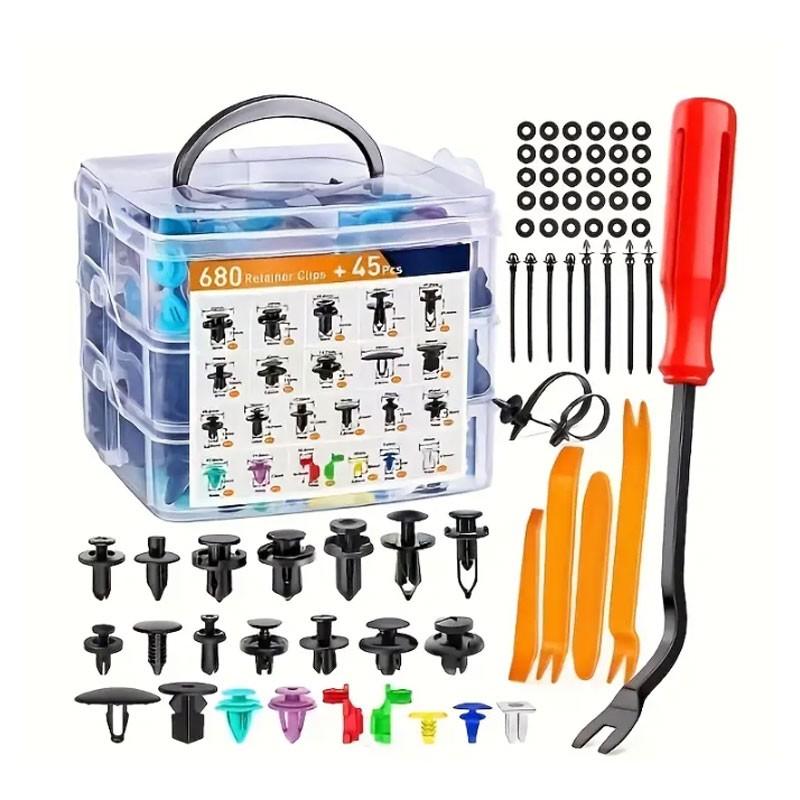Πλαστικοί συνδετήρες συγκράτησης αυτοκινήτου σε θήκη 3 επιπέδων με ξεχωριστά διαχωριστικά για κάθε κομμάτι 680 τμχ.