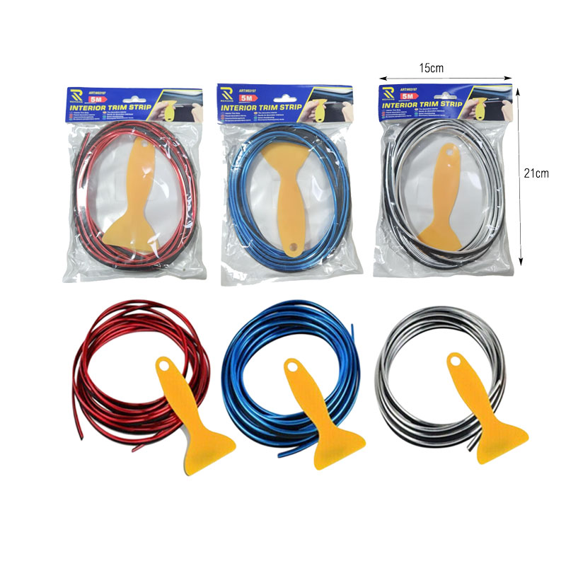 Η διακοσμητική ταινία αυτοκινήτου μήκους 5 μέτρων προσφέρει έναν εύκολο και γρήγορο τρόπο να αναβαθμίσετε την εσωτερική εμφάνιση του οχήματός σας. Κατασκευασμένη από ανθεκτικό υλικό, εφαρμόζει τέλεια σε διάφορες επιφάνειες, προσδίδοντας μοντέρνα εμφάνιση και προστατεύοντας από γρατζουνιές. Το σετ περιλαμβάνει εργαλείο τοποθέτησης για ακριβή και ασφαλή εφαρμογή. Διαθέσιμη σε κόκκινο, μπλε και ασημί για να ταιριάζει με το στυλ του αυτοκινήτου σας.