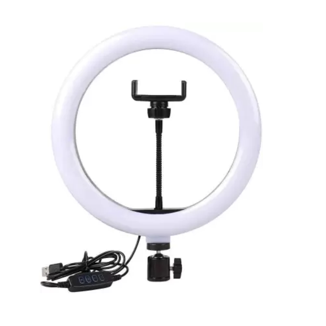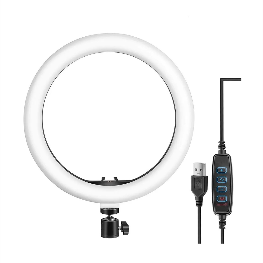 Ring fill light 12" ιντσών led. Ιδανικό για φωτογραφίσεις και video. Περιλαμβάνει βάση για κινητό. Έχει διακόπτη για ρύθμιση της φωτεινότητας και διαφορετικές θερμοκρασίες χώματος. Διαστάσεις 30.5×3.7×30.7cm.
