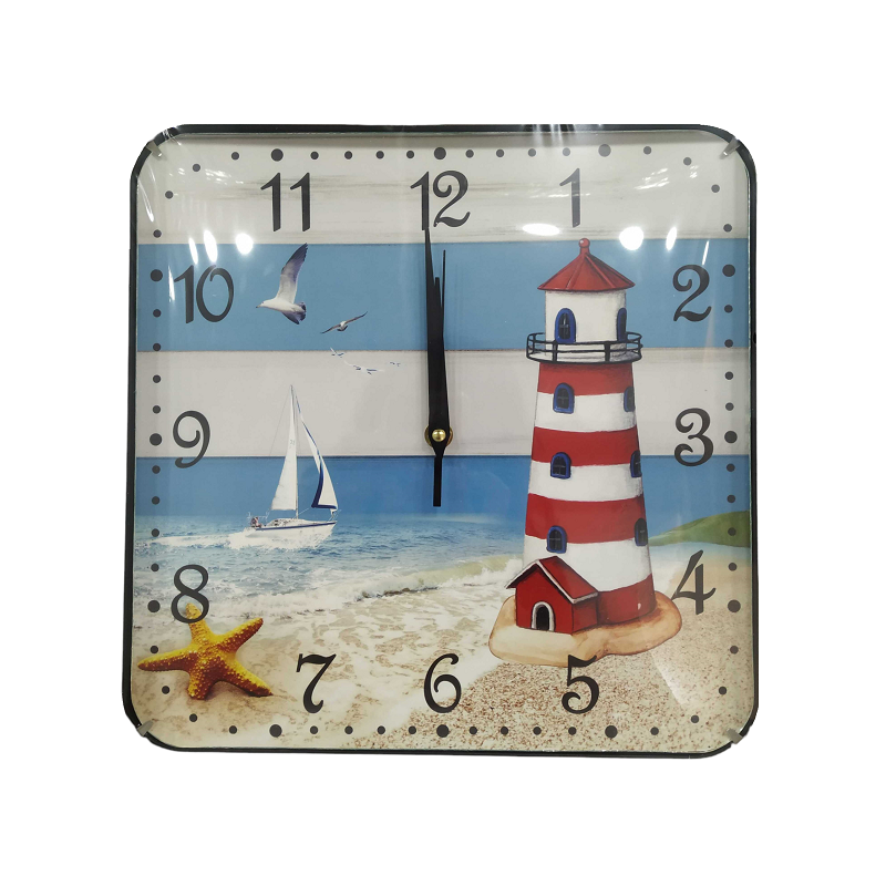 Ρολόι τοίχου σε μοντέρνο σχεδιασμό με ιδιαίτερο καλοκαιρινό σχέδιο στο καντράν, που μπορεί να ταιριάξει σε κάθε χώρο. Υλικό: πλαστικό, Διαστάσεις: 30 x 30 x 3.5cm.