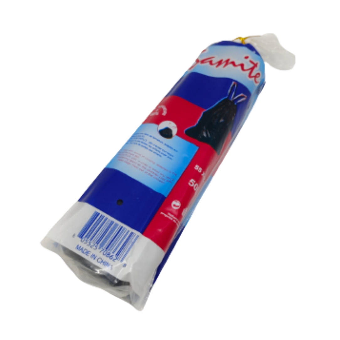 Σακούλες απορριμάτων. Μέγεθος 55x75cm. Η συσκευασία διαθέτει 10 σακούλες. Σε μαύρο χρώμα. Χωρητικότητα 50 λίτρα.