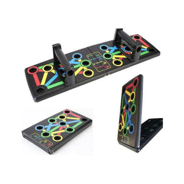 Σανίδα Foldable push up για πολλαπλές ασκήσεις πάνω στην εκγύμναση των κοιλιακών μυών. Η σανίδα push up διαθέτει 2 λαβές γυμναστικής και 10 διαφορετικές θέσεις στις οποίες κουμπώνουν για να γυμνάσουν κάθε ξεχωριστή μυϊκή ομάδα. Προσφέρουν την ιδανική στήριξη ώστε να επιτύχετε μεγαλύτερη βύθιση και σας βοηθούν για την σωστή εκγύμναση των ασκήσεων πιέσεων στήθους ενισχύει στήθος, ώμους, πλάτη, τρικέφαλους, δικέφαλους και τον πυρήνα σας. . Επίσης διαθέτουνε αντιολισθητική λαβή για να μην γλιστρούν τα χέρια.