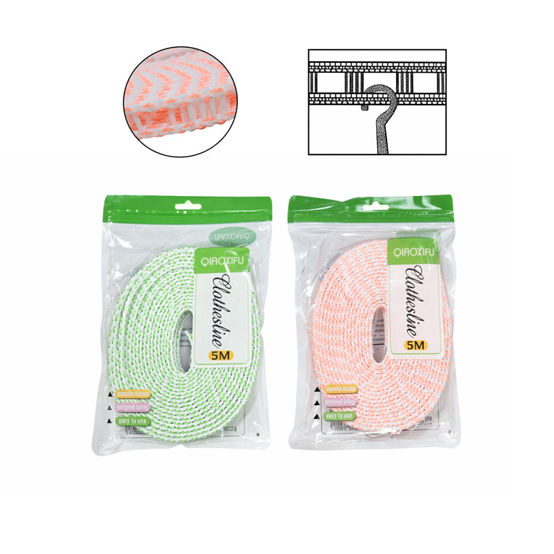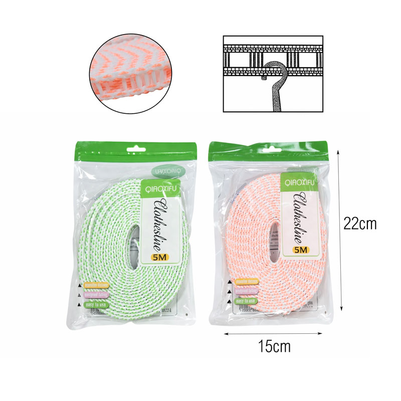 Το σχοινί απλώματος ρούχων 5 μέτρων είναι σχεδιασμένο με ειδική τεχνοτροπία ώστε τα ρούχα να απλώνονται εύκολα και σταθερά με κρεμάστρες. Διαθέτει υφή και δομή που συγκρατεί τις κρεμάστρες στη θέση τους, αποτρέποντας την ολίσθηση ακόμα και σε εξωτερικούς χώρους.