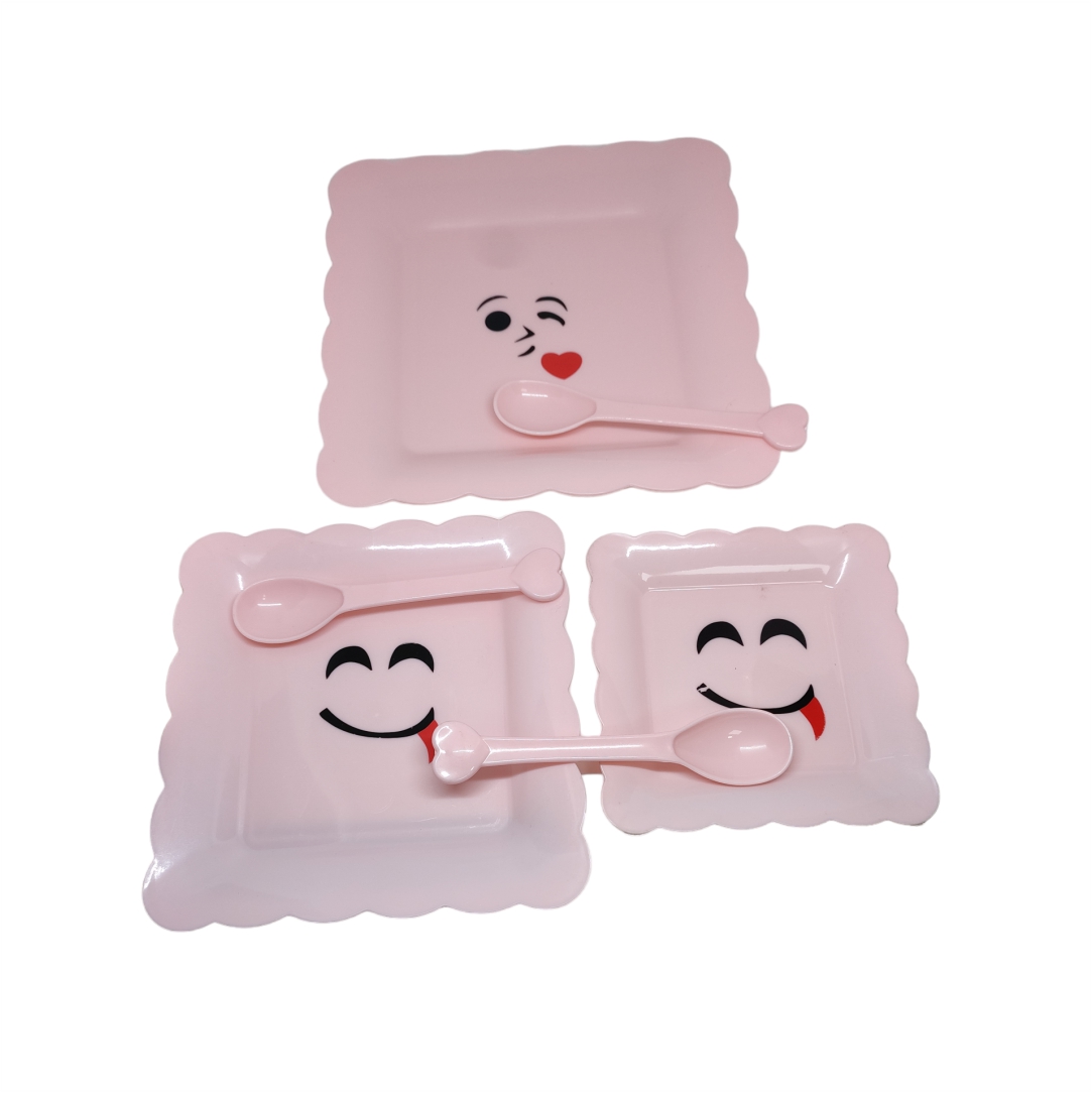 Σετ 3 τεμαχίων ρηχά πιάτα με 3 κουταλάκια. Κατασκευασμένα από πλαστικό. Πλένονται εύκολα και δεν σπάνε. Σε 3 διαφορετικά μεγέθη, μεγάλο 20cm, μεσαίο 16cm και μικρό 12,5cm.