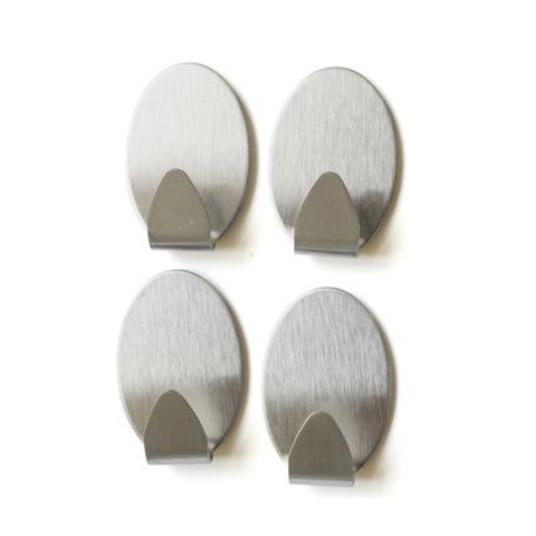 Σετ 4 τεμαχίων αυτοκόλλητα κρεμαστράκια. Κατάλληλη επιλογή για να τα χρησιμοποιήσετε στην κουζίνα σας για να κρεμάσετε πετσέτες, εργαλεία μαγειρικής και οποιοδήποτε άλλο αντικείμενο στο οποίο θέλετε να έχετε άμεση πρόσβαση. Διαθέτουν αυτοκόλλητη ταινία ώστε η τοποθέτηση να γίνεται εύκολα και γρήγορα και χωρίς να ανοίγετε τρύπες. Είναι κατασκευασμένα από ανοξείδωτο ατσάλι. Αντοχή βάρους 1,5kg.