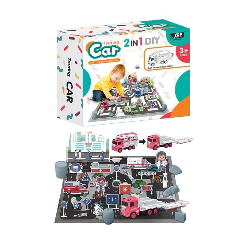 Σετ θεματικό σκηνικό αυτοκινητόδρομου πόλης με πολλά αξεσουάρ.
