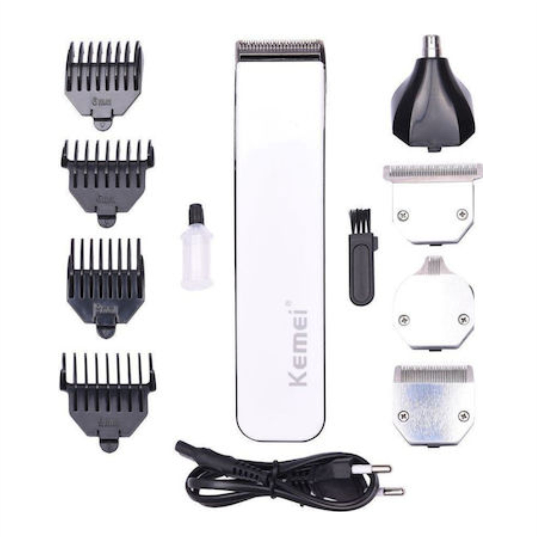 Επαναφορτιζόμενη κουρευτική-ξυριστική μηχανή. Kατάλληλη για χρήση σε περιοχές όπως τα μαλλιά, τα γενιά και το σώμα, ενώ ταυτόχρονα επιτρέπει πιο λεπτομερές κούρεμα σε μικρές περιοχές όπως τα αυτιά και τη μύτη. Λειτουργεί με μπαταρία. Ισχύς 3W. Χρόνος πλήρης φόρτισης 10 ώρες. Αυτονομία 35 λεπτά. Διαθέτει 4 διαφορετικές κεφαλές και 4 χτενάκια με μήκη κοπής 6mm και 9mm. Ρύθμιση μήκους κοπής από 1.0-20.0 mm. Διαστάσεις 15.5×3.5cm.