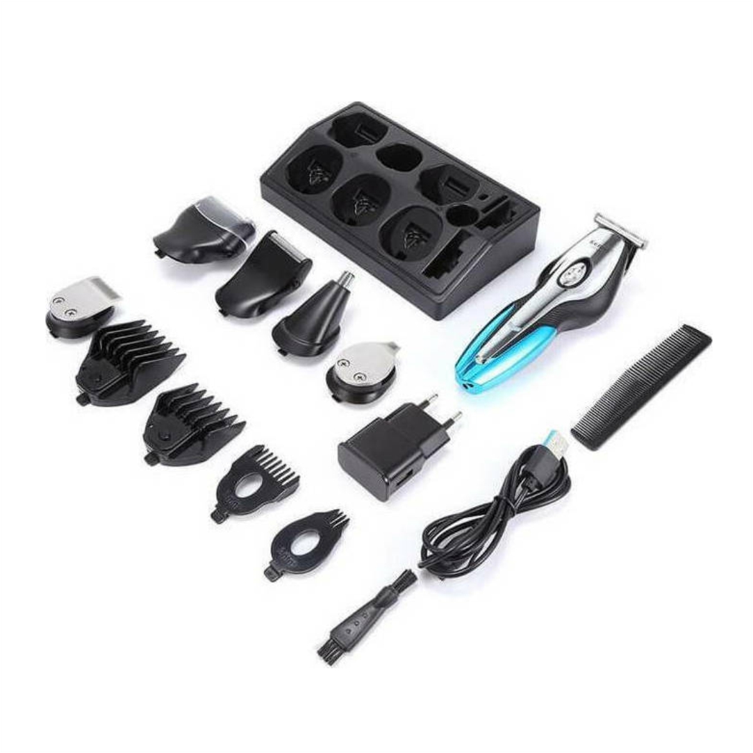 Επαναφορτιζόμενη κουρευτική-ξυριστική μηχανή. Kατάλληλη για χρήση σε περιοχές όπως τα μαλλιά, τα γενιά και το σώμα, ενώ ταυτόχρονα επιτρέπει πιο λεπτομερές κούρεμα σε μικρές περιοχές όπως τα αυτιά και τη μύτη. Λειτουργεί με μπαταρία. Ισχύς 3W. Χρόνος πλήρης φόρτισης 2 ώρες. Αυτονομία 120 λεπτά. Συμπεριλαμβάνει 12 αξεσουάρ, βάση φόρτισης, καλώδιο φόρτισης, βούρτσα καθαρισμού. Διαθέτει 4 διαφορετικές κεφαλές. Διαστάσεις 15x5cm.