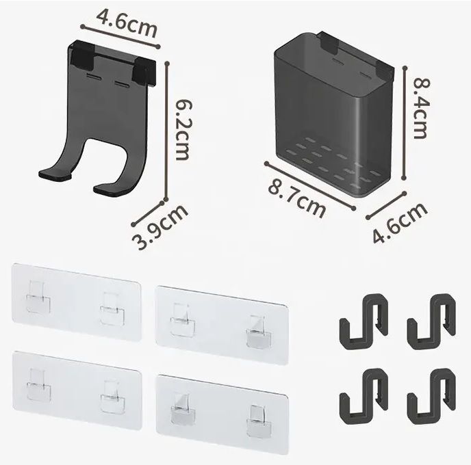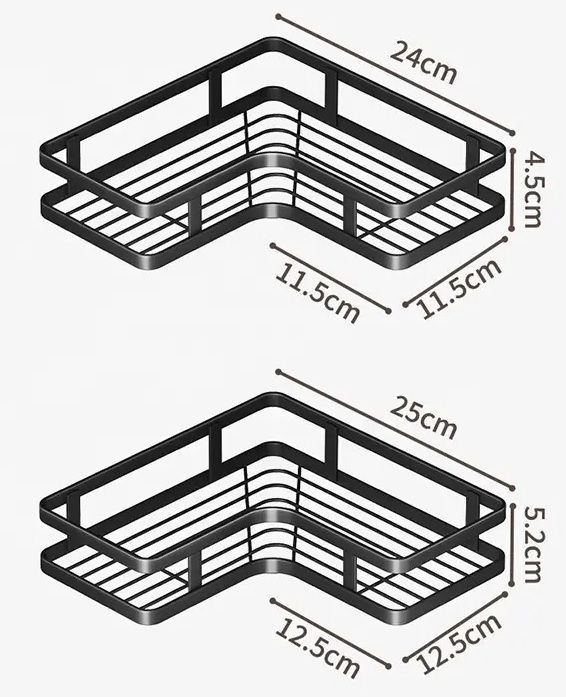 Σετ επιτοίχια ράφια οργάνωσης μπάνιου, με 2 γωνιακά ράφια, 2 θήκες σαπουνιού/σφουγγαριού και 1 κρεμάστρα.