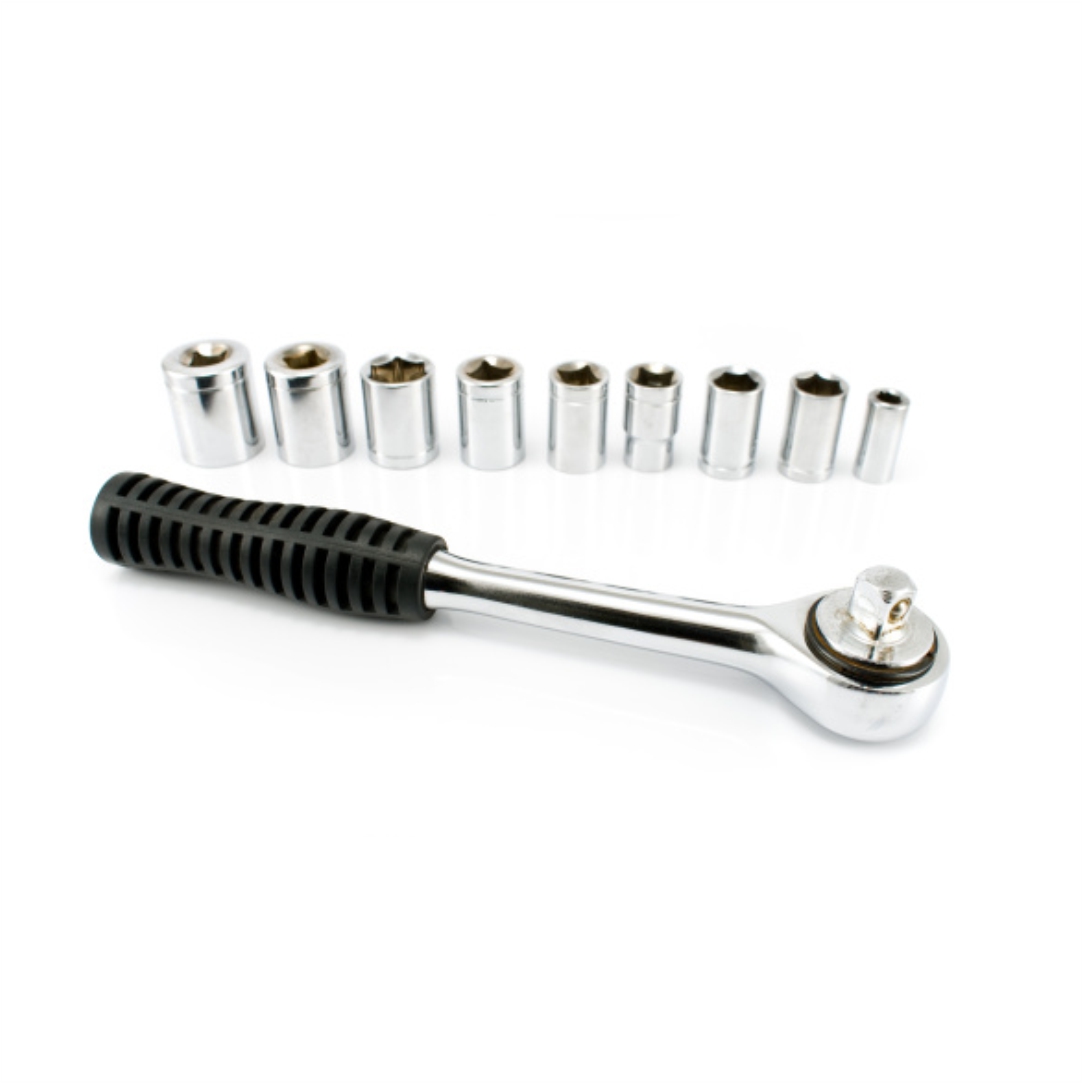 Σετ Καστάνια με καρυδάκια. Διακόπτης αντίστροφης κίνησης με τον αντίχειρα. Διαθέτει άνετη λαβή δυο υλικών. Περιλαμβάνει μια καστάνια και καρυδάκια εξάγωνα 8, 9, 10, 11, 12, 13, 14, 17 mm.