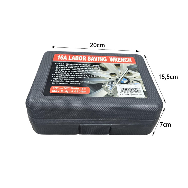 Το σετ εργαλείων καστάνιας ενίσχυσης ροπής 16:1 είναι ιδανικό για την εύκολη και αποτελεσματική αφαίρεση σφιχτών μπουλονιών από ζάντες αυτοκινήτων, SUV και επαγγελματικών οχημάτων. Χάρη στο σύστημα ενίσχυσης ροπής 1:16, προσφέρει μέγιστη ροπή έως και 680Nm, μειώνοντας σημαντικά την απαιτούμενη δύναμη. Περιλαμβάνει κασετίνα μεταφοράς και καρυδάκια 17mm, 19mm, 21mm, και 22mm, καλύπτοντας τις πιο συνηθισμένες διαστάσεις. Η δεξιόστροφη λειτουργία σφίγγει, ενώ η αριστερόστροφη λύνει τα μπουλόνια, καθιστώντας το ιδανικό εργαλείο για κάθε επαγγελματία ή ερασιτέχνη.