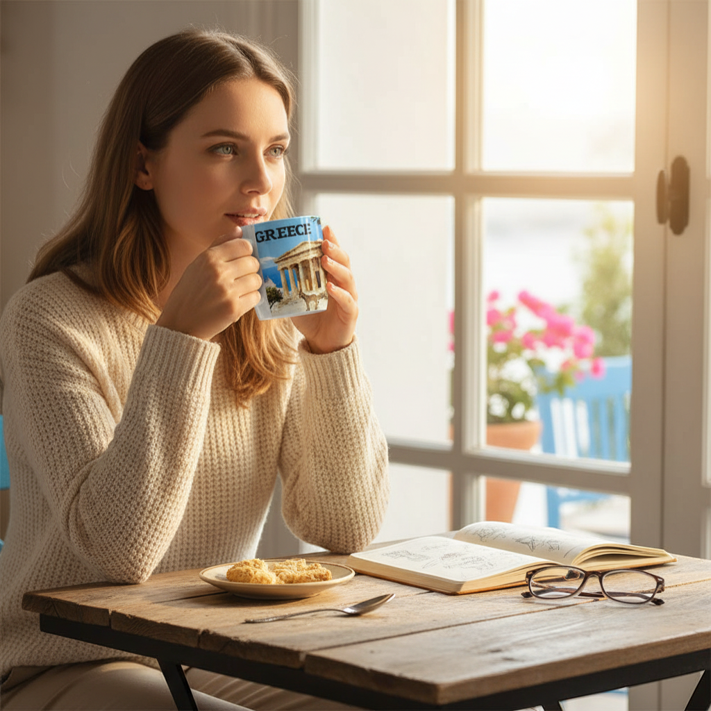 Σετ κεραμική κούπα Souvenir με κουτάλι – Greece – 241109