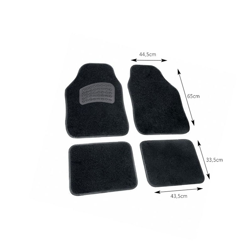 Σετ πατακιών αυτοκινήτου γενικής εφαρμογής, σχεδιασμένο για προστασία του δαπέδου και αναβάθμιση της εμφάνισης του εσωτερικού του οχήματος. Το σετ περιλαμβάνει τέσσερα πατάκια, δύο μπροστινά και δύο πίσω, καλύπτοντας πλήρως τις βασικές ανάγκες καθημερινής χρήσης.