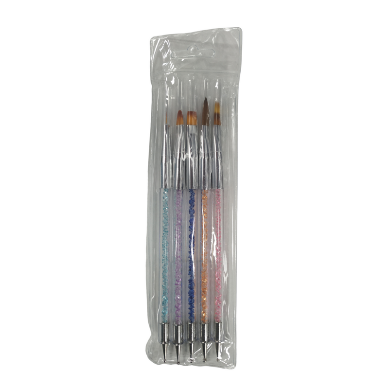 Σετ πινέλα και εργαλεία μανικιούρ Nail Art 5 τεμαχίων, διπλής όψης, σε εντυπωσιακό, κομψό σχεδιασμό με ανοξείδωτο κάλυμμα κεφαλής.