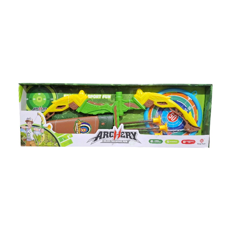Παιδικό σετ τοξοβολίας με ταμπλό στόχου και βέλη με βεντούζα. Εντυπωσιακός σχεδιασμός, ανθεκτική κατασκευή και εργονομική λαβή για να εξασκήσεις τις ικανότητές σου και να γίνεις ο καλύτερος του αθλήματος!
