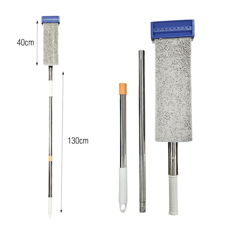 Σφουγγαρίστρα μικροϊνών με τηλεσκοπικό μεταλλικό κοντάρι, ιδανική για αποτελεσματικό καθαρισμό δαπέδων σε κάθε χώρο. Η κεφαλή από μικροΐνες απορροφά σκόνη και υγρασία, προσφέροντας βαθύ καθαρισμό χωρίς να αφήνει σημάδια.