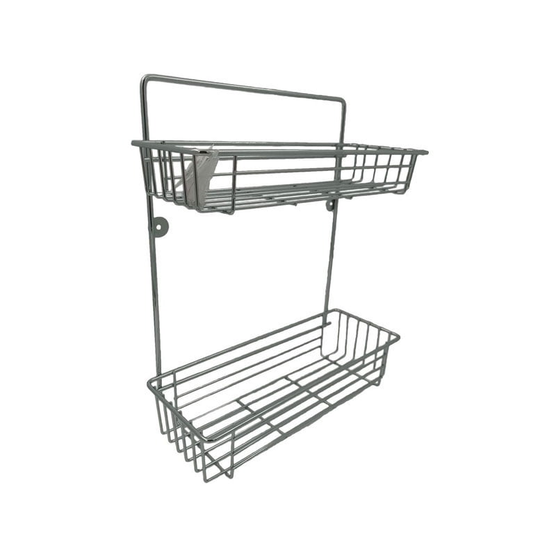 Εταζέρα μεταλλική διώροφη,με ίνοξ εμφάνιση,για την αποθήκευση αναλώσιμων μπάνιου,συμπεριλαμβάνονται και οι βίδες στήριξης.