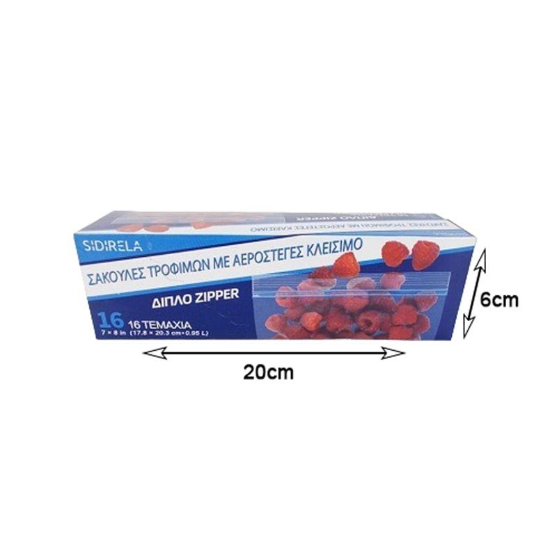 Sidirela Σακούλες τροφίμων με αεροστεγές κλείσιμο 17.8×20.3cm 0.95l 16τμχ E-3358 – Double zipper food storage bag 16pcs