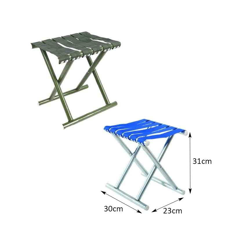 Πρακτικό πτυσσόμενο σκαμπό camping με ανθεκτικό μεταλλικό σκελετό και κάθισμα από ενισχυμένους ιμάντες. Ιδανικό για εκδρομές, κάμπινγκ, ψάρεμα, παραλία ή εξωτερικούς χώρους, προσφέρει σταθερότητα και άνεση σε μικρό και ελαφρύ σχεδιασμό.